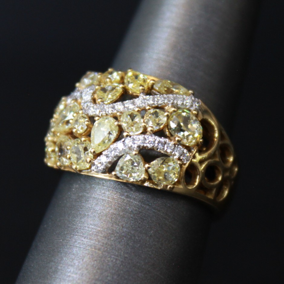 Yellow & White Diamond Cluster Ring 18K Yellow Gold