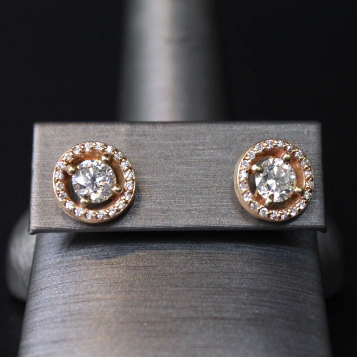 Diamond Open-Halo Stud Earrings – 1.52 ctw – 14K Yellow Gold