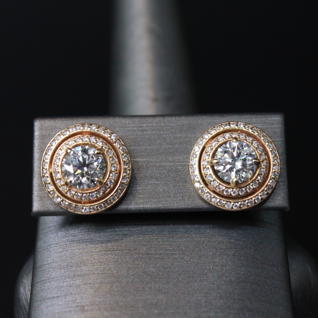 Diamond Double-Halo Stud Earrings – 2.10 ctw – 14K Yellow Gold