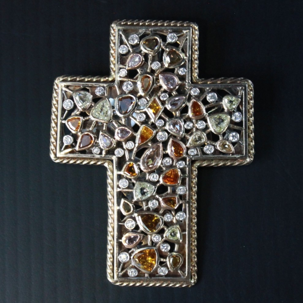 Natural Fancy Colored Diamond Cross Pendant – 18K Yellow Gold
