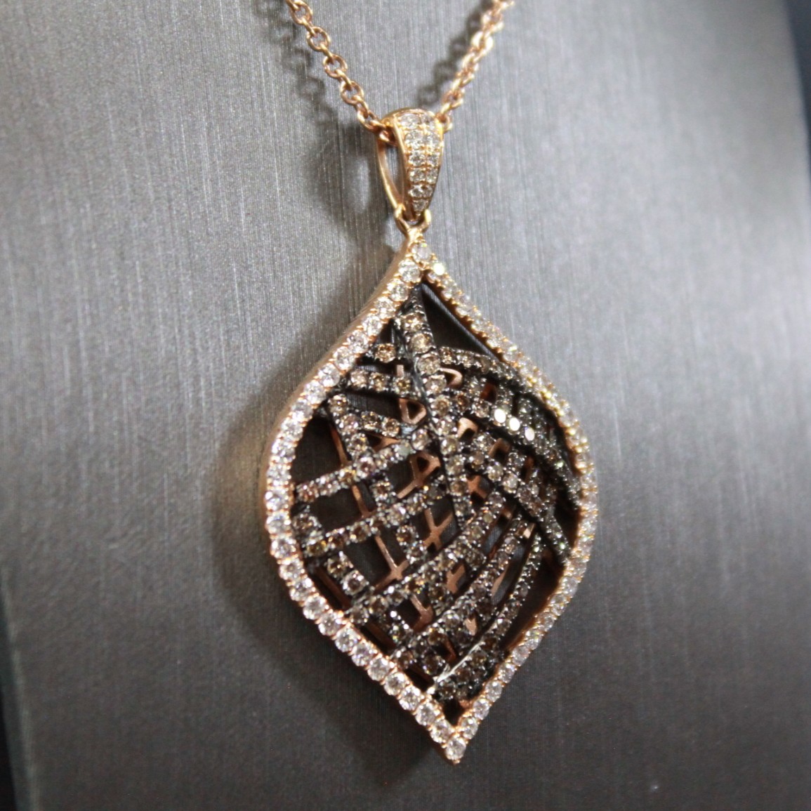 Champagne & White Diamond Pendant with Chain – Black Rhodium – 18K Rose Gold