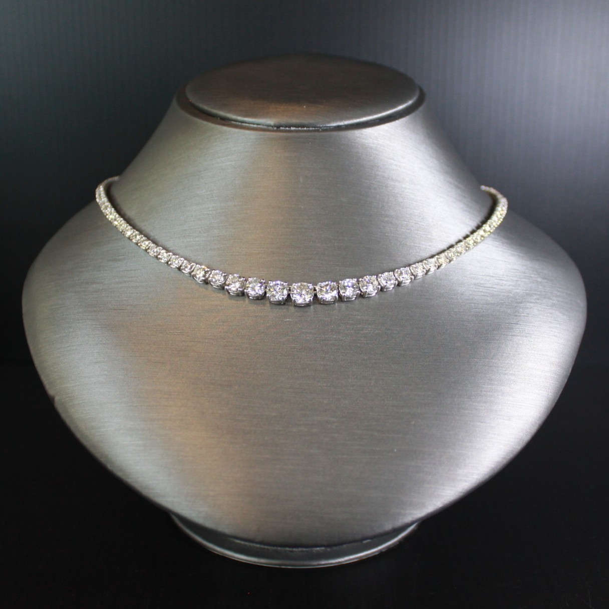 Natural Diamond Graduated Round Brilliant Cut Tennis Necklace in Platinum