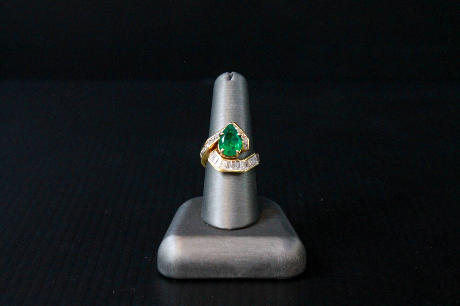 Pear-Shaped Emerald & Baguette Diamond Ring – 3.20ct Emerald | 3.00ctw Diamonds | 18K Yellow Gold