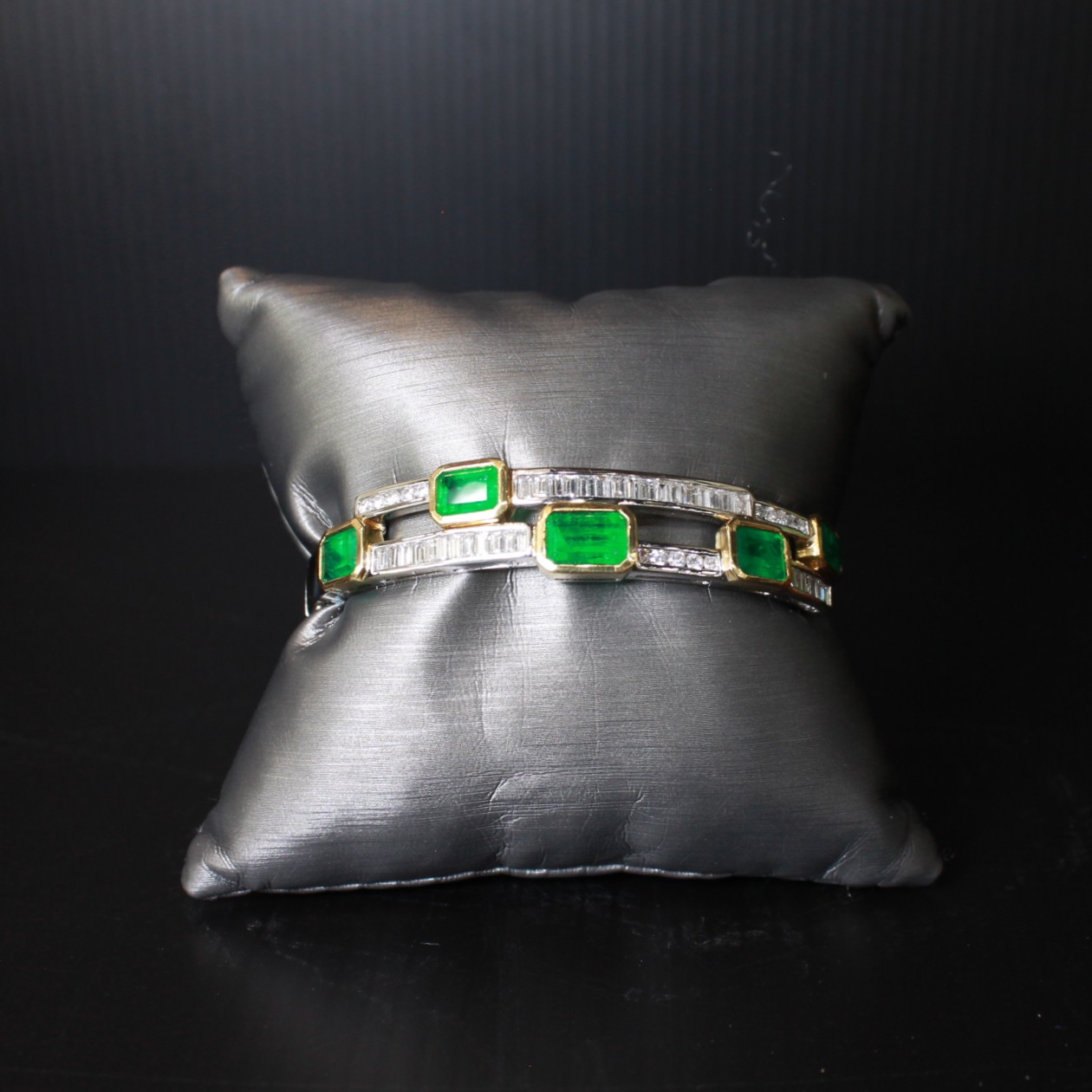 Diamond & Emerald Bangle – 36.0g – 18K Two-Tone Gold