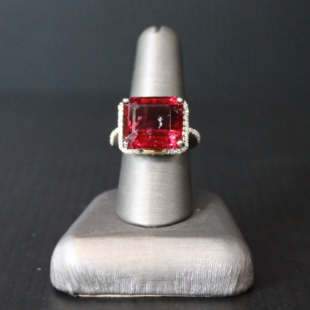 Rubellite Tourmaline & Diamond Ring 14.65 Ct Rubellite Tourmaline | 0.55 Ct Diamonds | 14K Gold