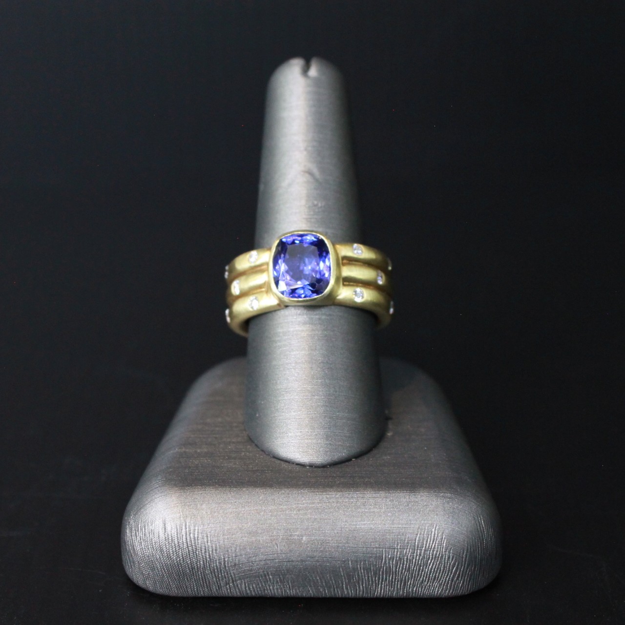 Tanzanite & Diamond Cost-Inn Ring – 3.65 ct Tanzanite, 0.30 ctw Diamonds – 18K Yellow Gold