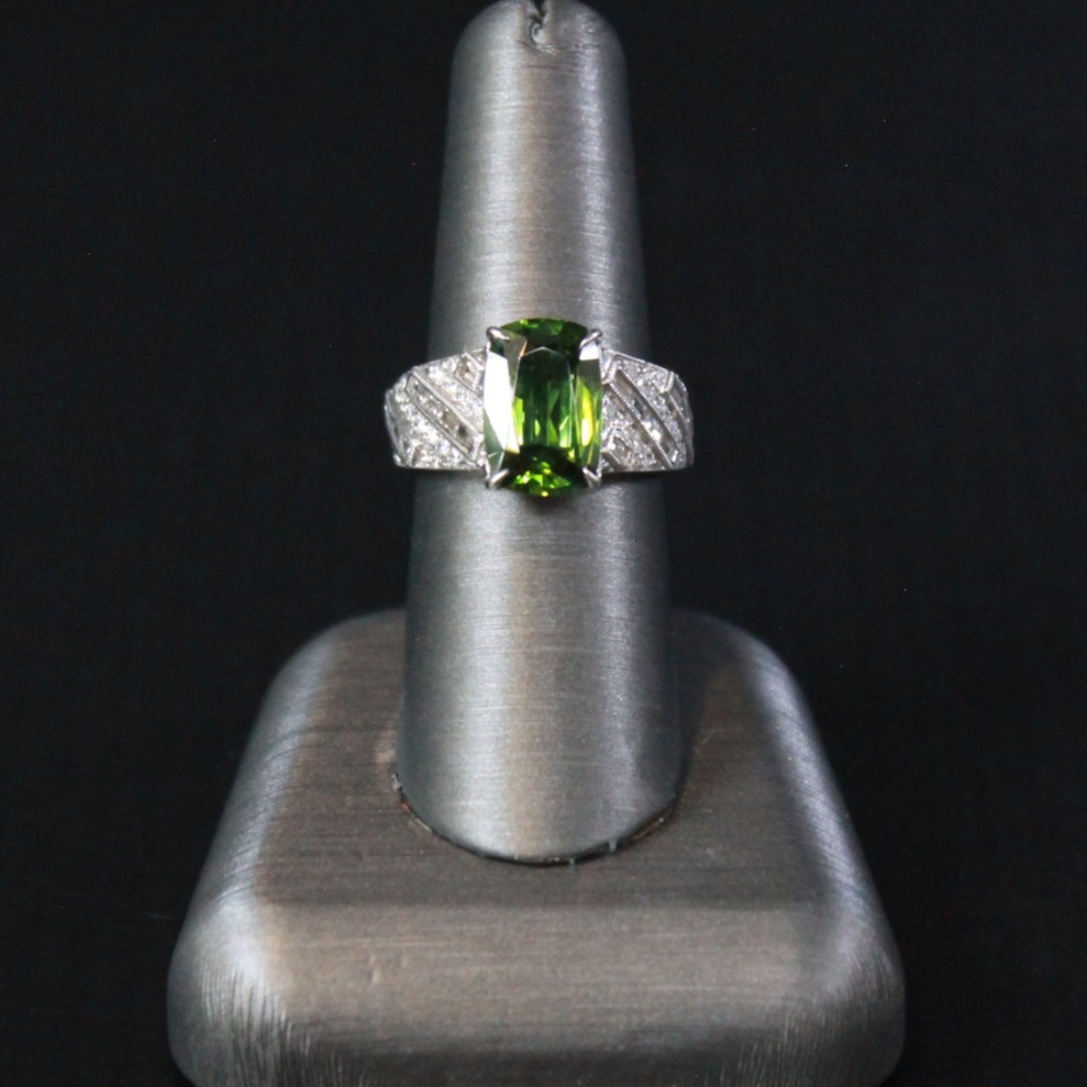 Peridot & Diamond Ring – 3.50 ct Peridot, 1.25 ctw Diamonds – 18K White Gold