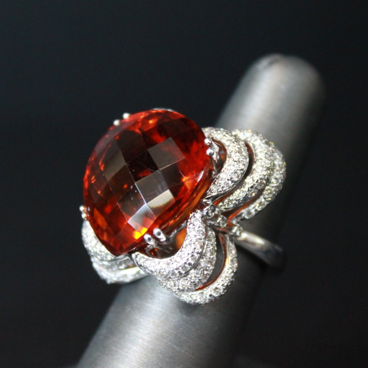 Mandarin Citrine & Diamond Fantasy Ring 23 Ct Mandarin Citrine | 2.0 Ct Diamonds | 18K White Gold